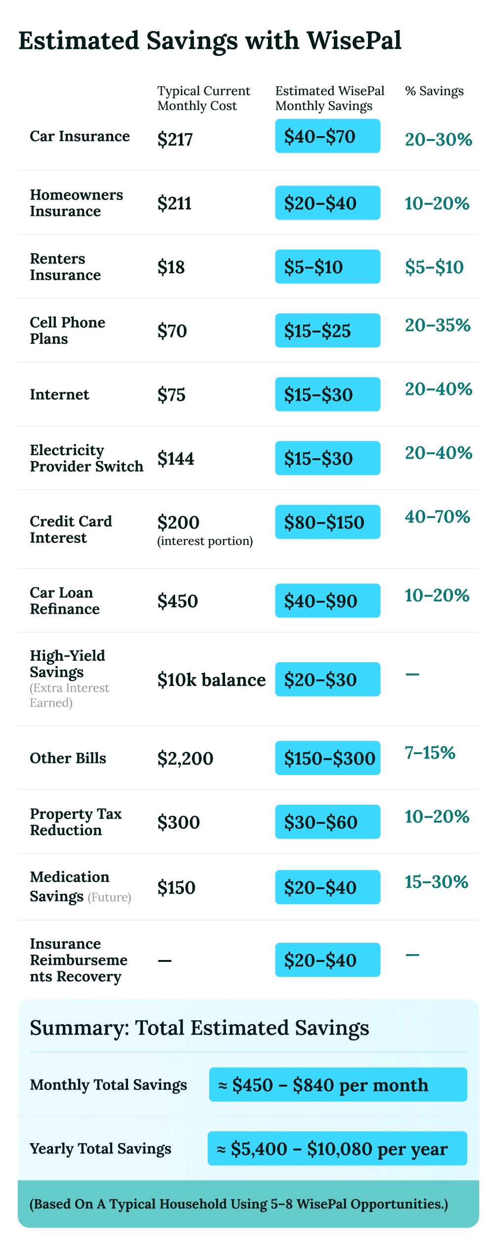 Click below to see how much WisePal could save you: